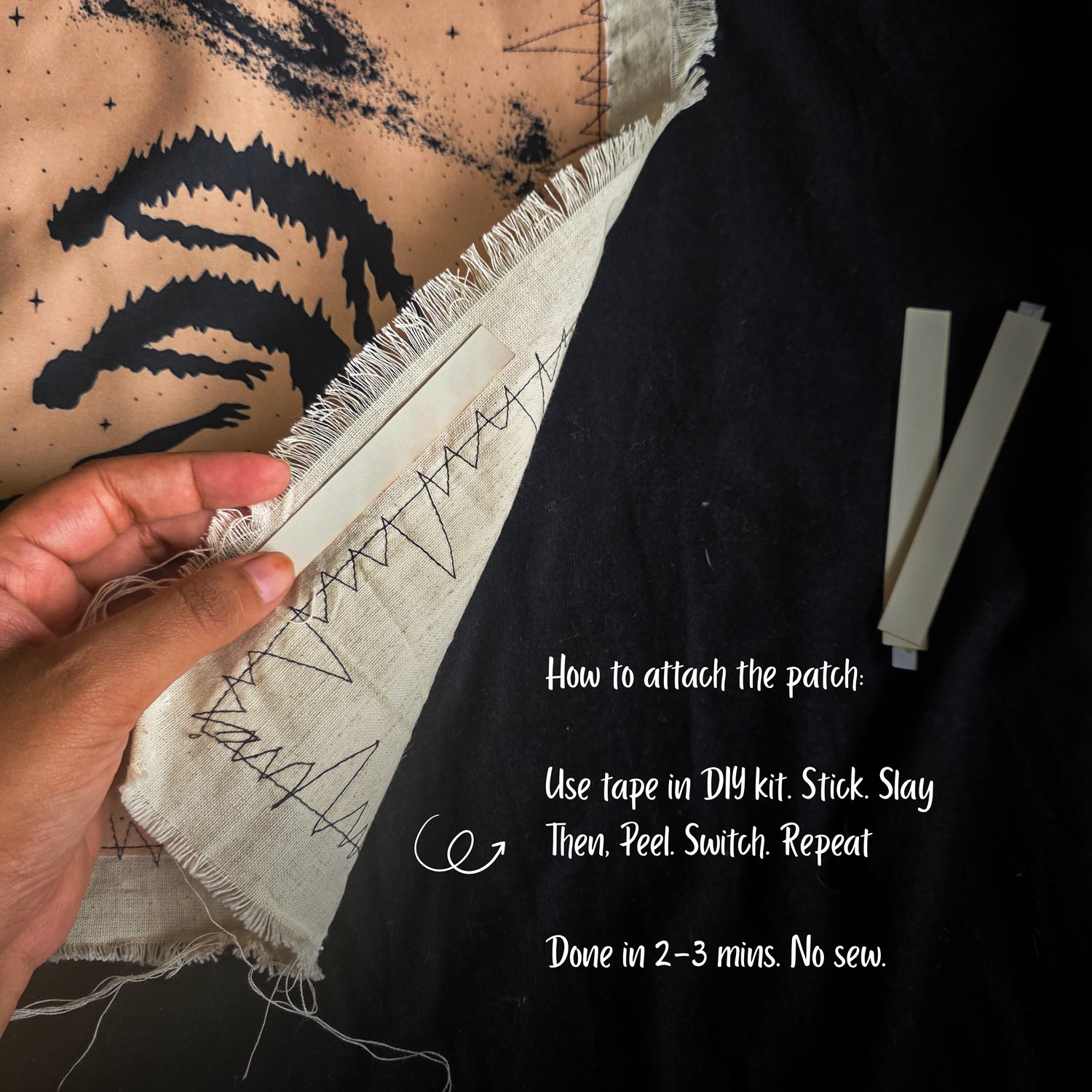 • Patches come in different sizes depending on what you’ve chosen. The size of each patch (print) is fixed as per its design. Some designs are available only in one size, while others come as a set with different sizes. Sizes cannot be customised. Overall sizes may differ depending upon the base cloth.